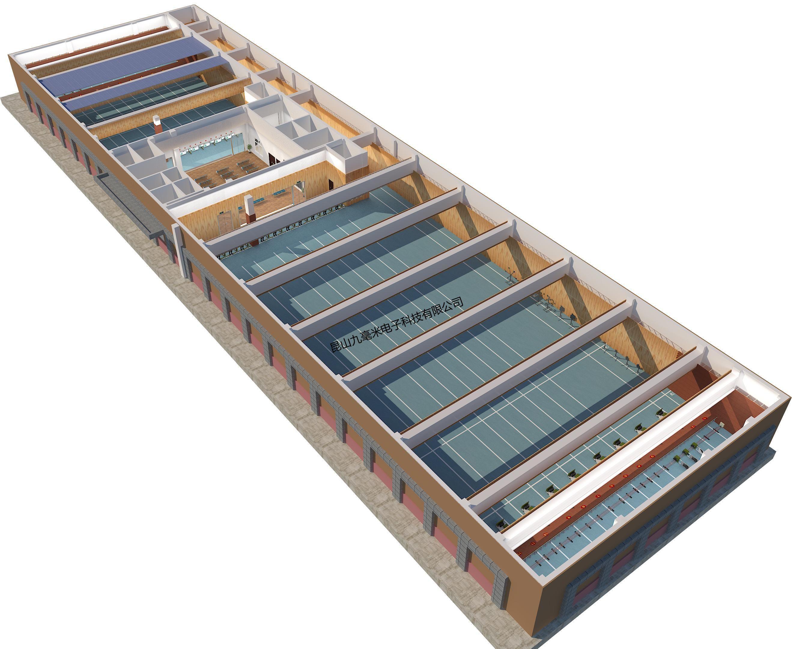 室內(nèi)靶場建設(shè)主要分為觀摩廳和射擊大廳,按功能劃分可以由四部分組成分別是:觀摩廳、射擊大廳、射擊區(qū)和靶位區(qū)。